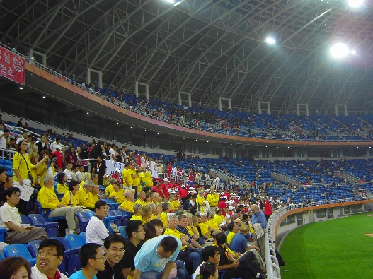 Schwedenfans links, Koreafans rechts danaeben